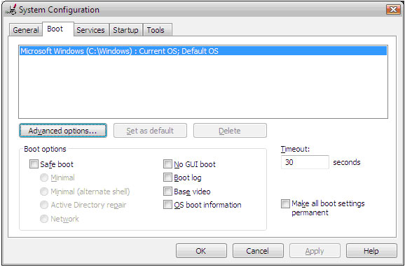For those who just need to modify the boot settings of an existing operating system, it is best to use MSCONFIG. MSCONFIG includes a GUI, shown in Figure 4, which makes it easy to use.